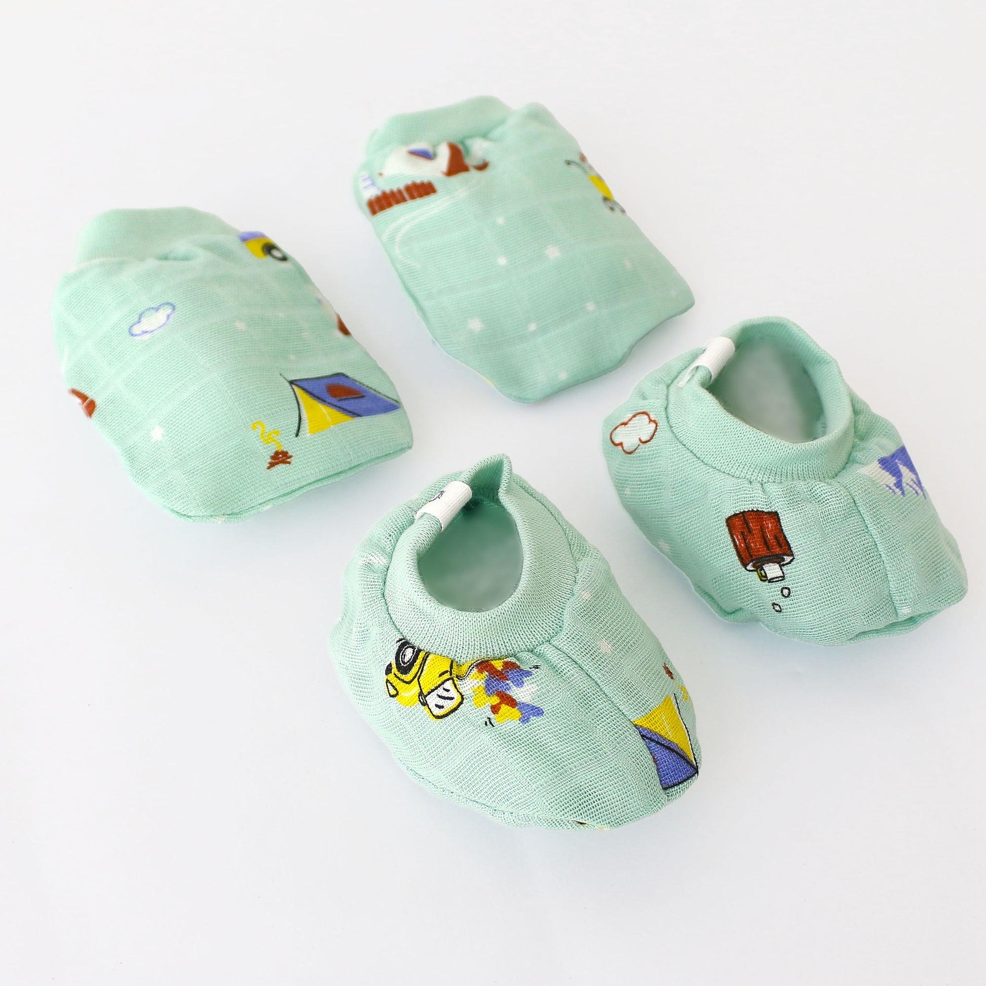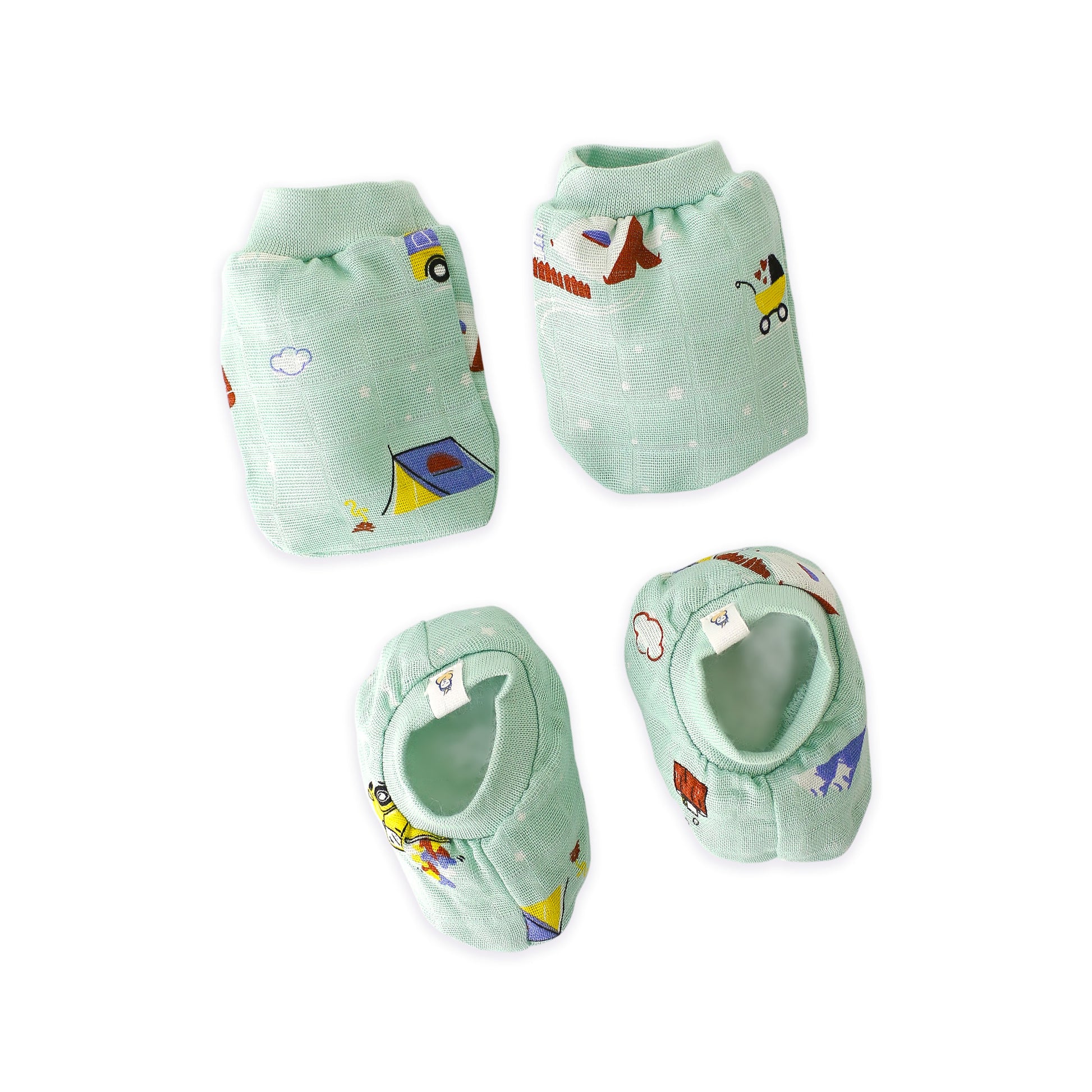 Baby Cap, Mittens and booties Set - Snowy Village Tales (0 - 3 months)